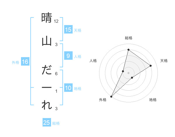 晴山 だーれさんを姓名の画数から五運を鑑定