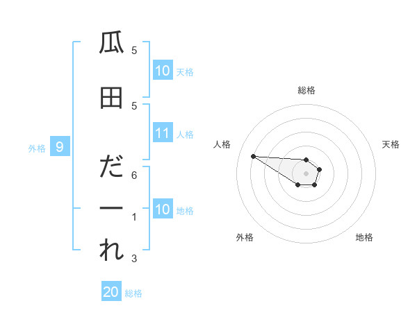 瓜田 だーれさんを姓名の画数から五運を鑑定