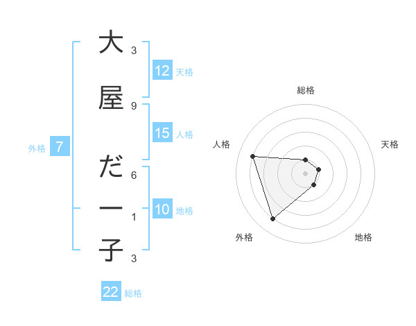 大屋 だー子さんを姓名の画数から五運を鑑定