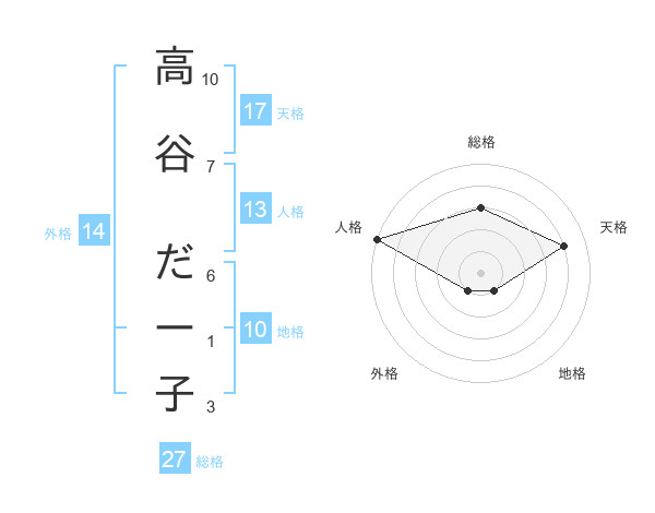 高谷 だー子さんの天格は17画の4点!