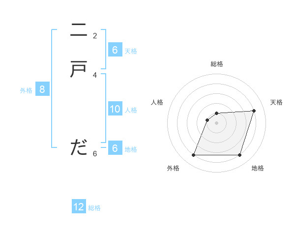 二戸 ださんの天格は6画の4点!