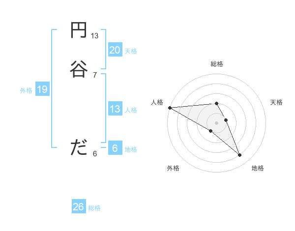 円谷 ださんの天格は20画の1点!