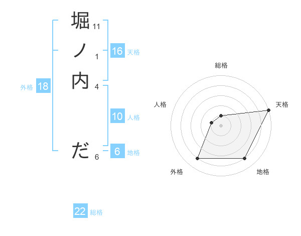堀ノ内 ださんの総格は22画の1点!