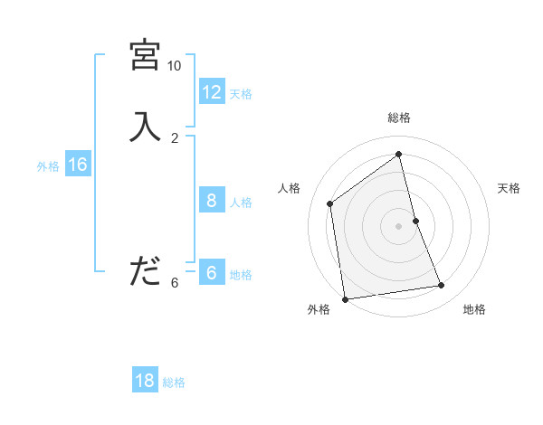 宮入 ださんの総格は18画の4点!