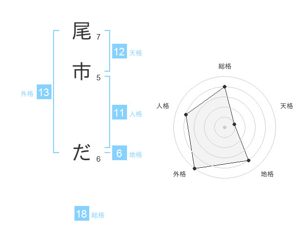 尾市 ださんの外格は13画の5点!