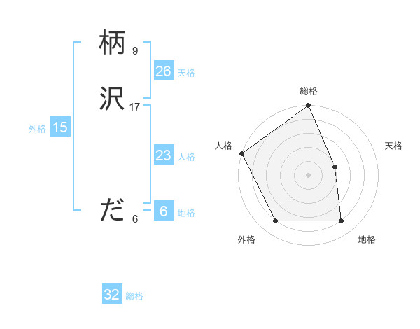 柄沢 ださんの総格は32画の5点!