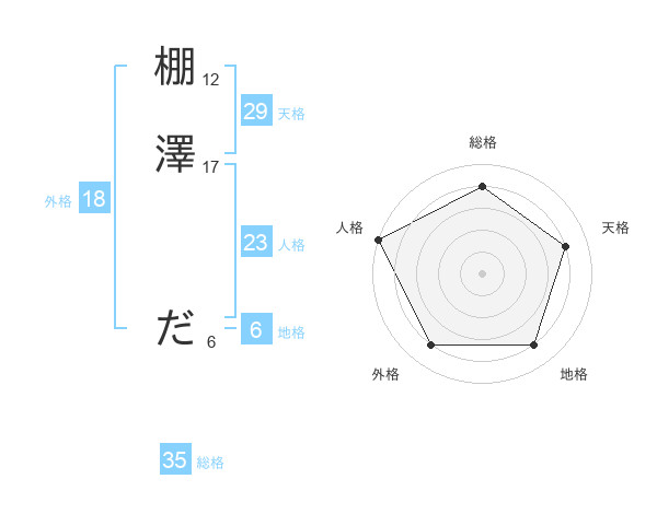 棚澤 ださんの総格は35画の4点!