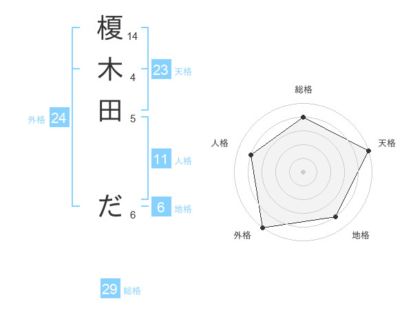 榎木田 ださんの天格は23画の5点!
