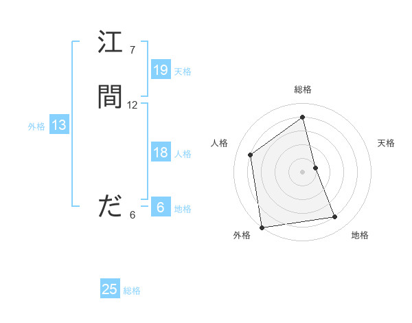 江間 ださんの外格は13画の5点!