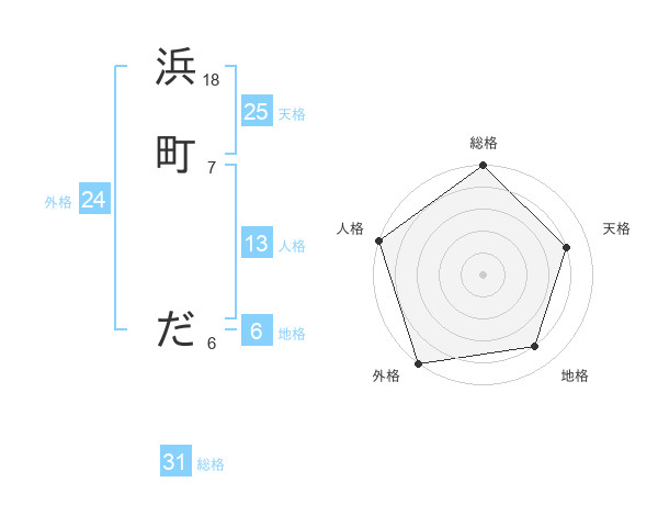 浜町 ださんの総格は31画の5点!