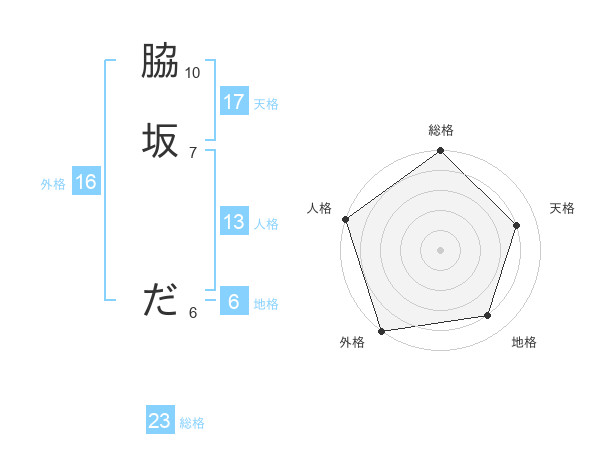 脇坂 ださんの総格は23画の5点!