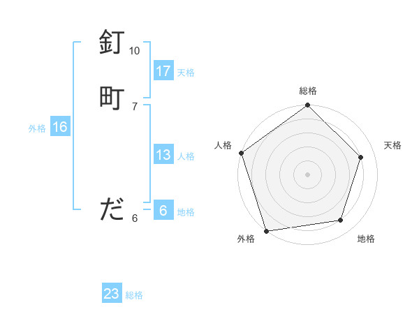 釘町 ださんの総格は23画の5点!