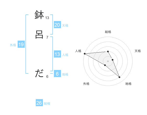 鉢呂 ださんを姓名の画数から五運を鑑定