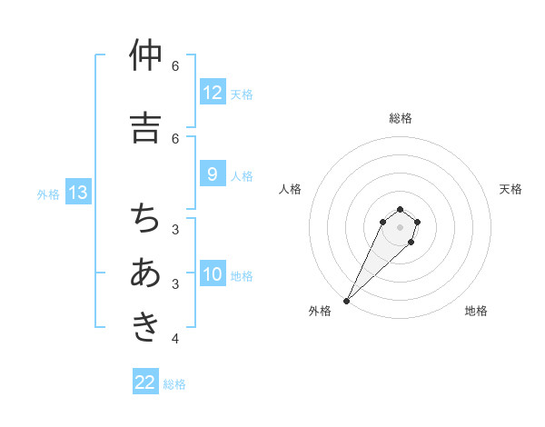 仲吉 ちあきさんの外格は13画の5点