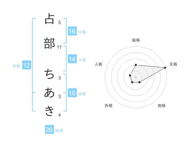 占部 ちあきさんを姓名の画数から五運を鑑定