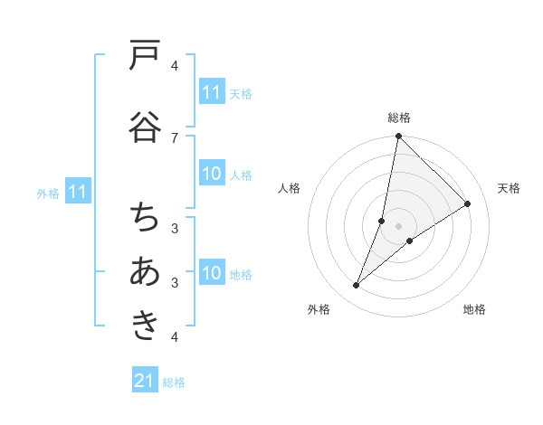 戸谷 ちあきさんを姓名の画数から五運を鑑定