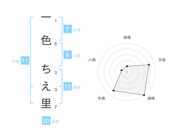 一色 ちえ里さんの総格は20画の1点!