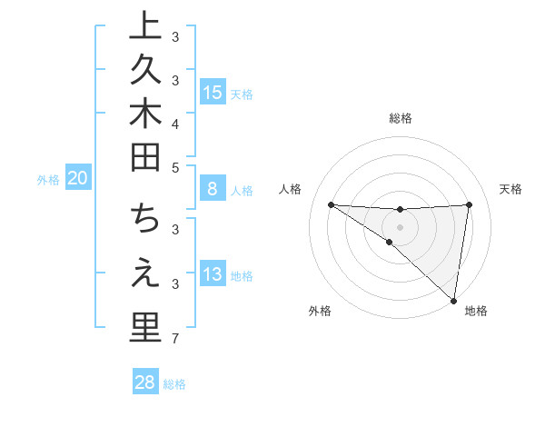 上久木田 ちえ里さんを姓名の画数から五運を鑑定