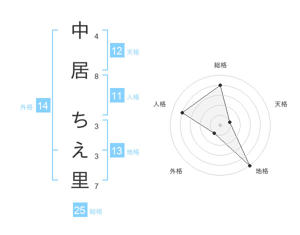 中居 ちえ里さんを姓名の画数から五運を鑑定