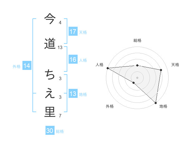今道 ちえ里さんを姓名の画数から五運を鑑定