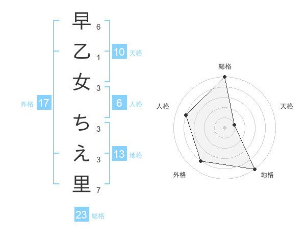 早乙女 ちえ里さんの総格は23画の5点!