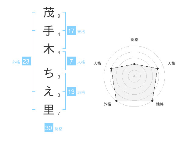 茂手木 ちえ里さんを姓名の画数から五運を鑑定