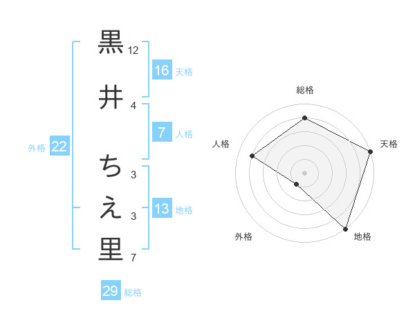 黒井 ちえ里さんを姓名の画数から五運を鑑定