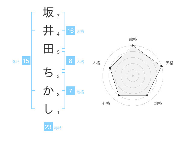 坂井田 ちかしさんの総格は23画の5点!