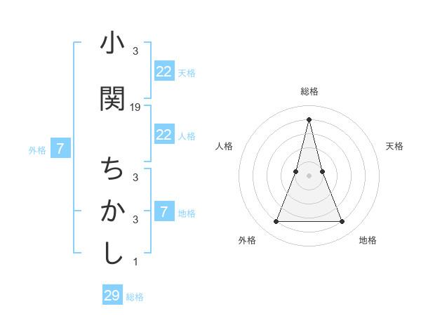 小関 ちかしさんを姓名の画数から五運を鑑定