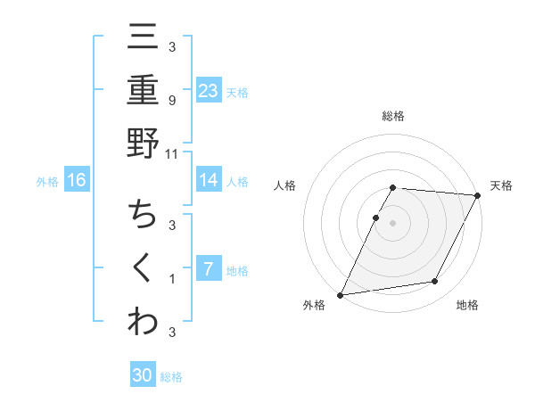三重野 ちくわさんの外格は16画の5点!