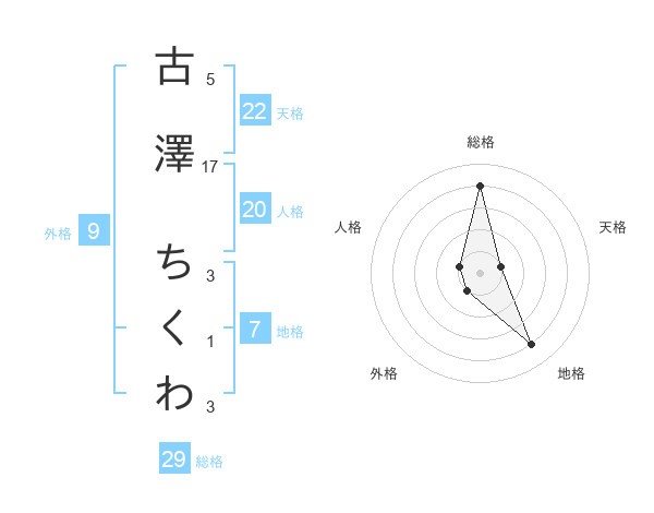 古澤 ちくわさんの総格は29画の4点!