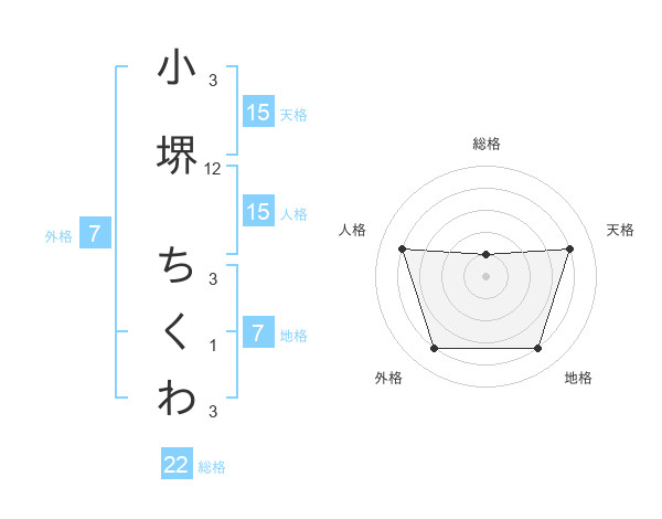 小堺 ちくわさんを姓名の画数から五運を鑑定