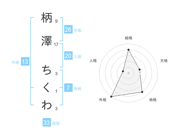 柄澤 ちくわさんの総格は33画の4点!