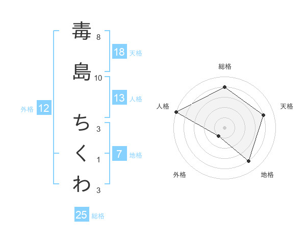 毒島 ちくわさんを姓名の画数から五運を鑑定