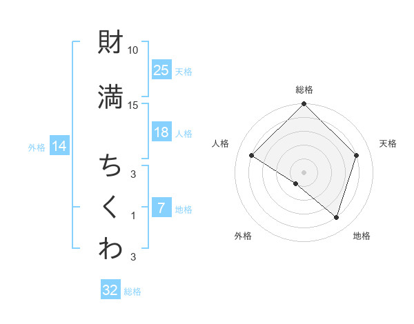財満 ちくわさんを姓名の画数から五運を鑑定