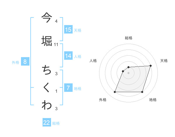 今堀 ちくわさんを姓名の画数から五運を鑑定