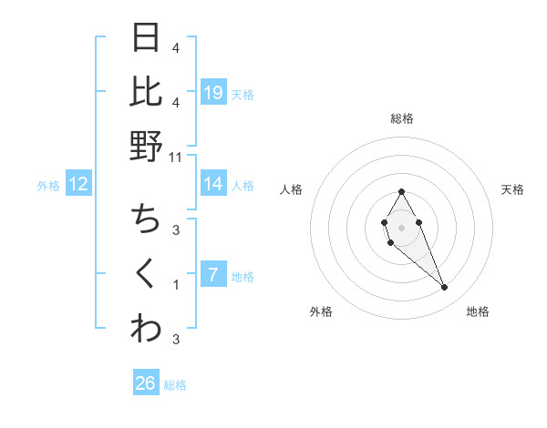 日比野 ちくわさんを姓名の画数から五運を鑑定