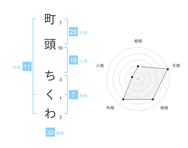 町頭 ちくわさんの総格は30画の2点!