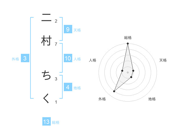 二村 ちくさんの総格は13画の5点!