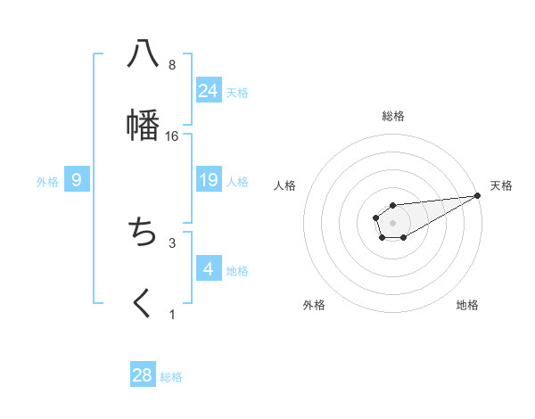 八幡 ちくさんを姓名の画数から五運を鑑定