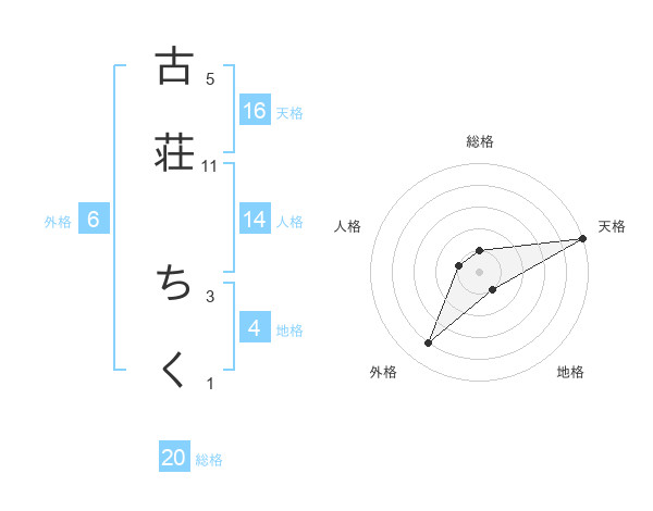 古荘 ちくさんを姓名の画数から五運を鑑定