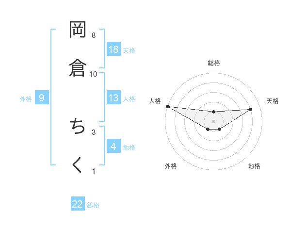 岡倉 ちくさんの総格は22画の1点!
