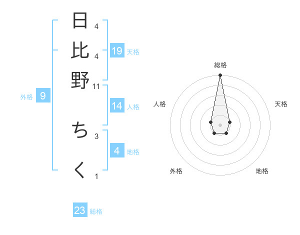 日比野 ちくさんを姓名の画数から五運を鑑定
