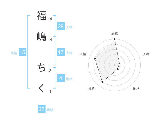 福嶋 ちくさんの総格は32画の5点!