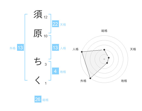須原 ちくさんの外格は13画の5点!