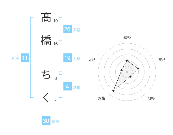 髙橋 ちくさんを姓名の画数から五運を鑑定