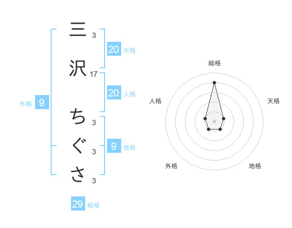 三沢 ちぐささんを姓名の画数から五運を鑑定