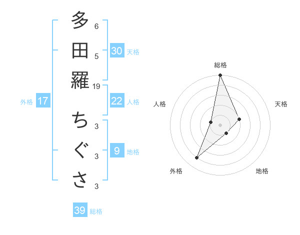 多田羅 ちぐささんを姓名の画数から五運を鑑定