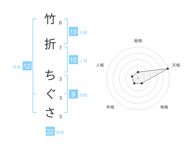 竹折 ちぐささんを姓名の画数から五運を鑑定