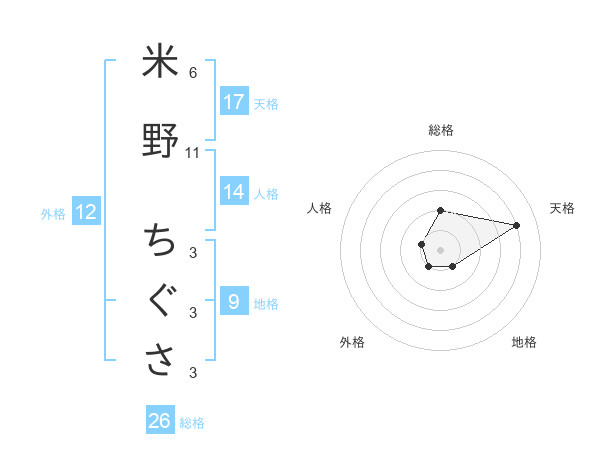 米野 ちぐささんの天格は17画の4点!